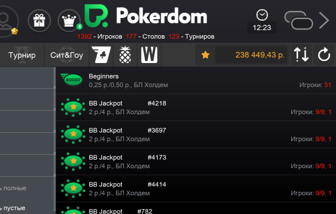 Так, здесь присутствуют привычные кэш-столы на Холдем, Омаху, Хай-Лоу, 7-карточный Стад, 32-карточный Дро-покер и Американу. По некоторым из них также проводятся еще и MTT, и Sit&Go, а это отличная возможность заработать намного больше, чем вы вложили.
